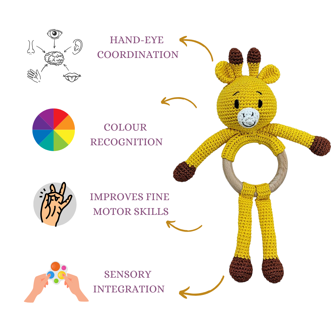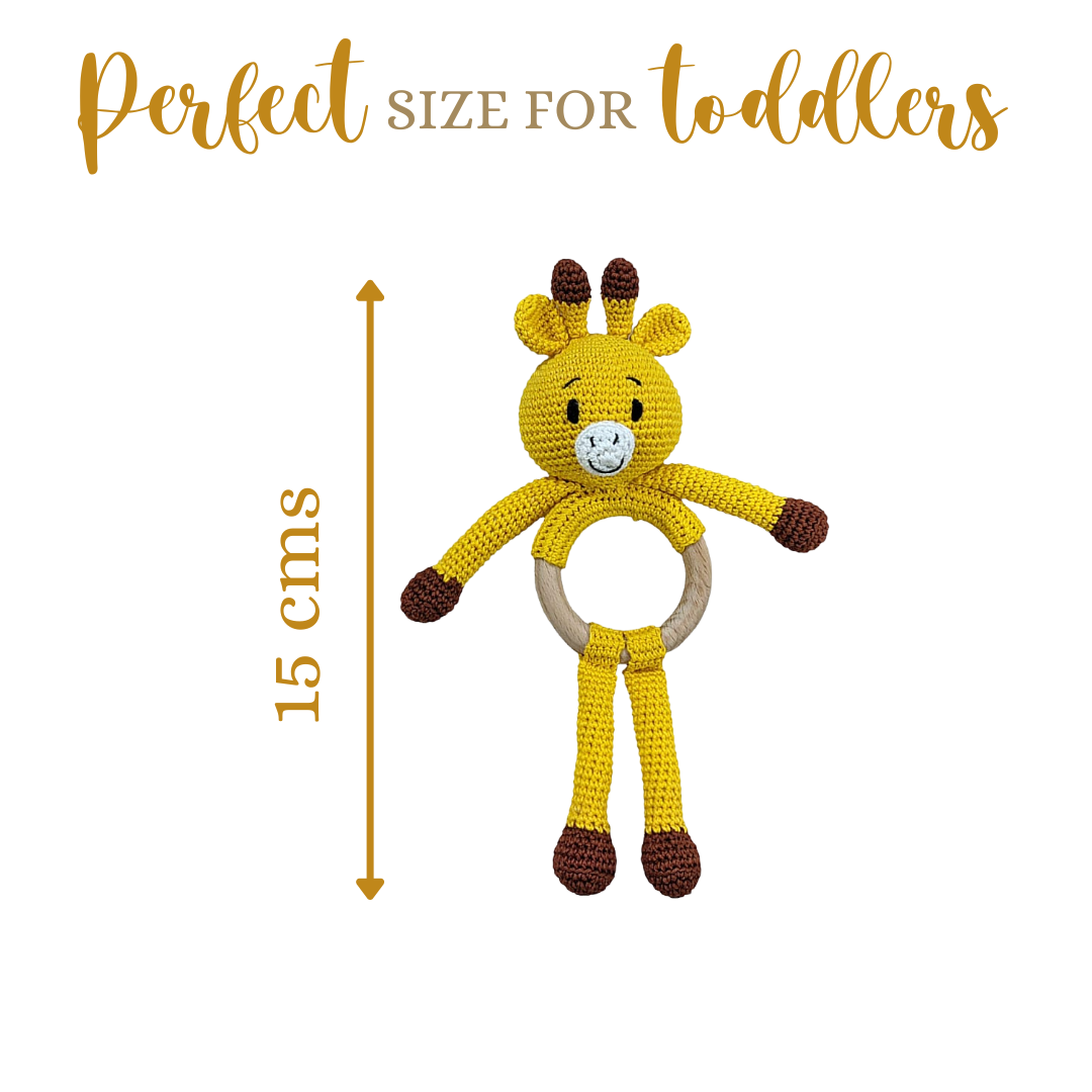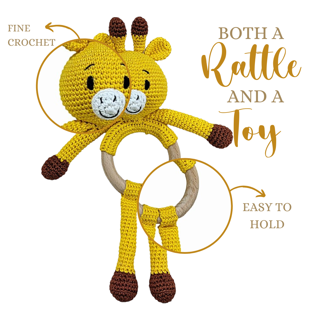 Let your baby’s laughter reach new heights! 🌈🦒 Our Crochet Giraffe Giggles Rattle Toy is a soft, handcrafted friend that stretches smiles as far as its neck. Every shake sends ripples of giggles through tiny fingers, while the textured crochet invites sensory discovery. Safe, snuggly, and full of charm, this little giraffe isn’t just a toy—it’s a tower of cuddles and wonder for your newborn’s world. ✨💛