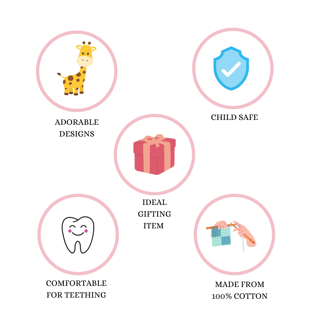 Crafted using certified, child-safe yarn, this soft crochet toy doubles as a teether, making it perfect for soothing sore gums during early teething stages. Lightweight and easy to grip, it helps develop motor skills while offering endless cuddles and calm playtime moments.