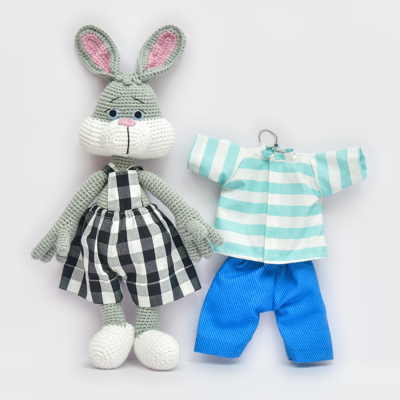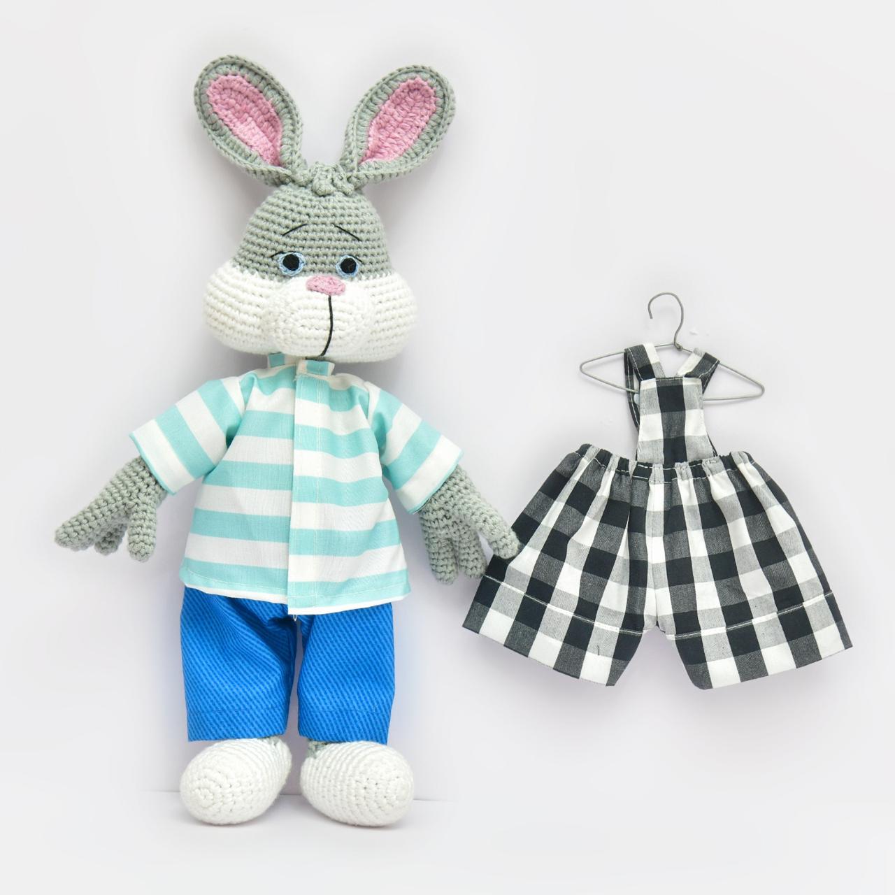 Rope, Crochet Bunny with Interchangeable Outfit – Handcrafted Artisan Toy (33 cm)