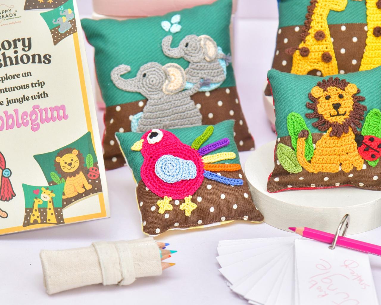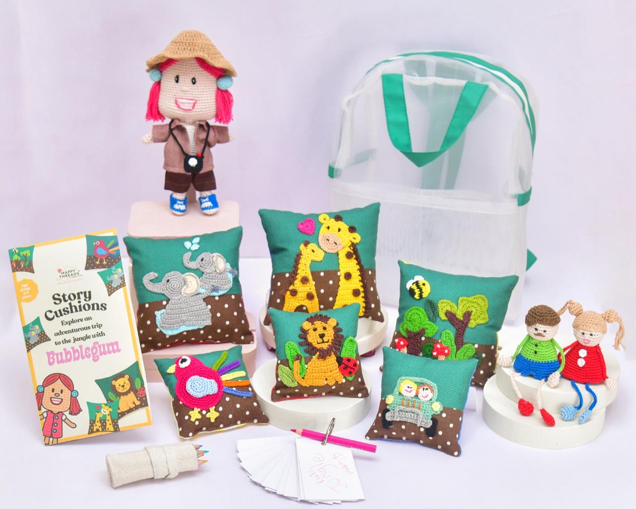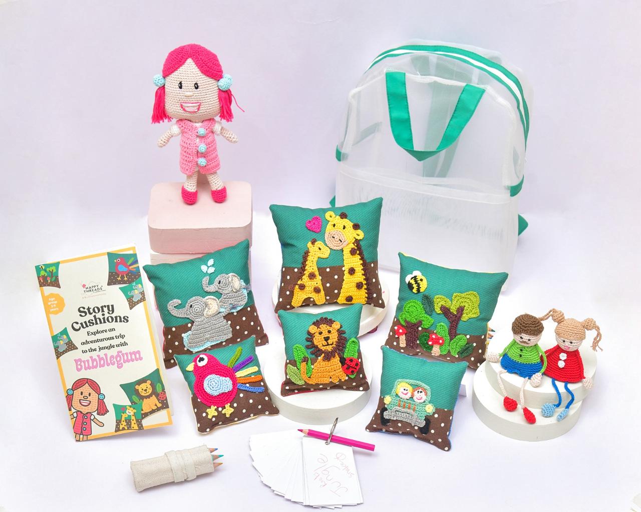 Story Cushions is a one-of-a-kind storytelling kit featuring a handmade doll, soft crochet cushions, themed outfits and finger puppets. Portable, safe and durable, it sparks imagination, builds vocabulary, boosts confidence and nurtures teamwork through playful storytelling 🎭✨