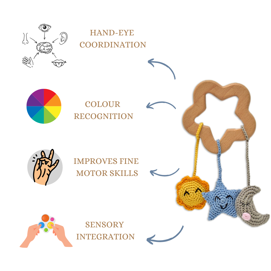 π Cute & Educational: Features sun, star, and moon shapes to introduce babies to shapes, colors, and celestial concepts.