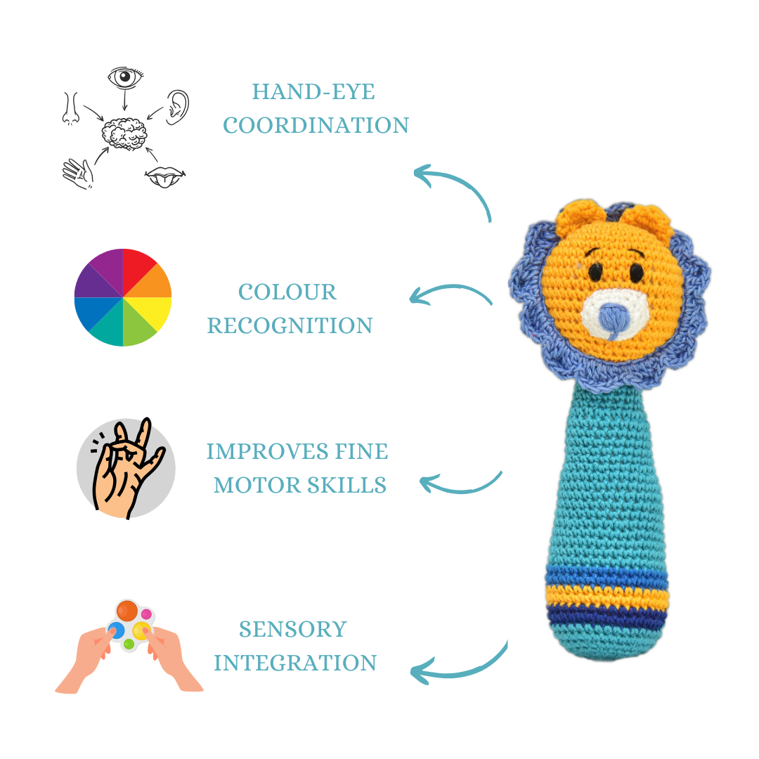 Meet the adorable Sunny Cubs Hand Toy — a cheerful little companion designed to bring comfort, warmth, and playful joy to your baby’s everyday moments. With its soft crochet texture and cuddly form, it encourages gentle play, sensory exploration, and early bonding. Perfectly sized for tiny hands, it’s a delightful mix of comfort and charm. ☀️