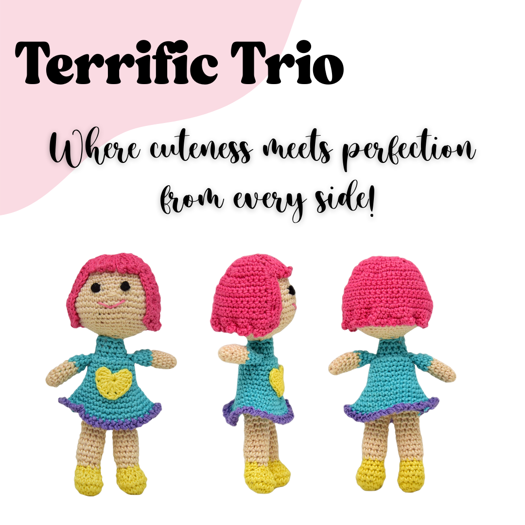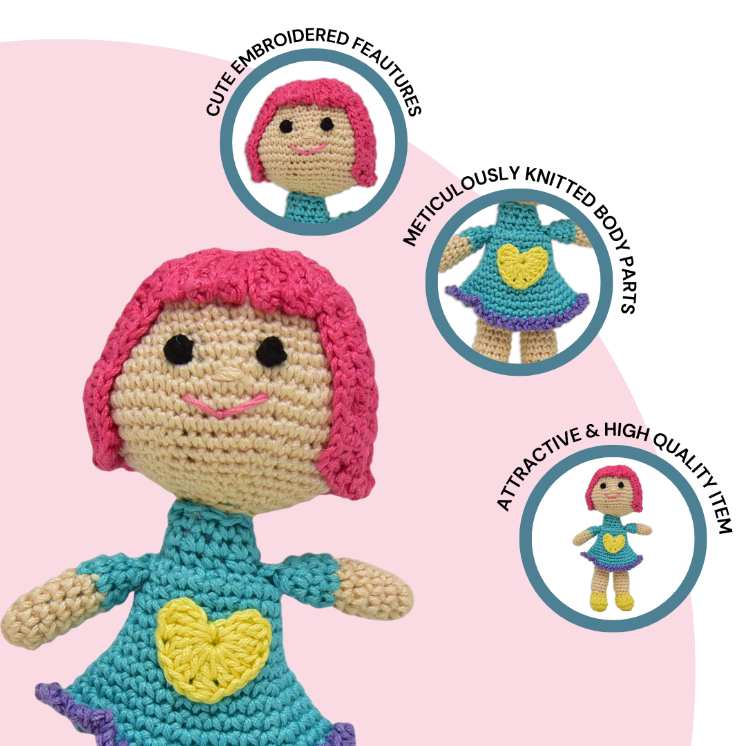 Lovingly crocheted by skilled artisans using child-safe yarn, this doll blends thoughtful design with playful personality—making her a keepsake your child will cherish.