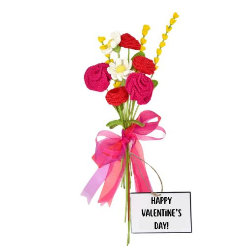 Show your love with a handmade crochet flower bouquet featuring classic red roses 🌹 and delicate pink carnations 💗.